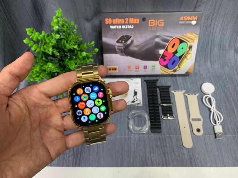 S9 Ultra Max 2 Smart Watch Series Ultra 2 Golden Edition – Bluetooth Calling HD Display 2.19 Inch Big Size – 49mm – Wireless Charging – with 3 straps